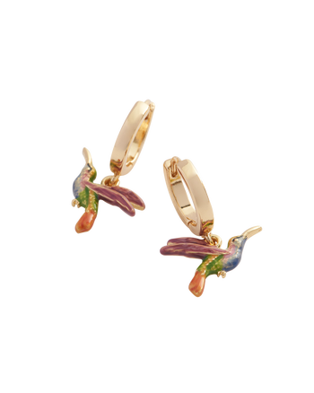 Flutter through your day with our Hummingbird Huggies. These hand-painted enamel charms dangle delicately from lobe-hugging hoops, symbolising joy and resilience. Perfect for adding a touch of nature's magic to your outfit, they inspire you to find happiness in the smallest details.