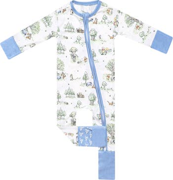 A sweet print brings cuddly charm to these convertible footie pajamas made from buttery-soft fabric with grips on the feet for steady steps.