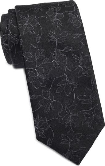 Fashioned from lustrous silk jacquard, this handsome floral tie brings dapper distinction to formal and semiformal attire.