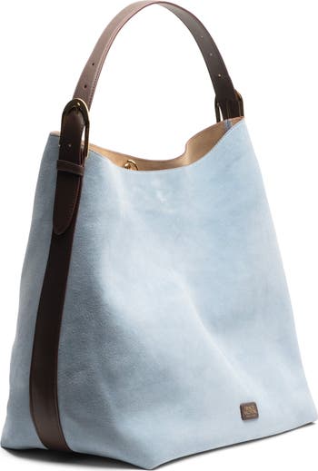 Soft Italian suede enhances the polished vibe of this roomy hobo bag framed by an adjustable shoulder strap and flat, wide base.