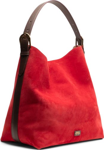 Soft Italian suede enhances the polished vibe of this roomy hobo bag framed by an adjustable shoulder strap and flat, wide base.