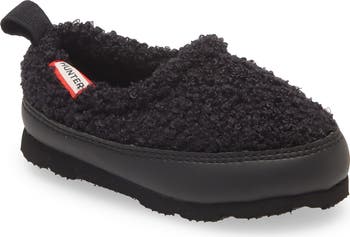 Keep your little one's toes snug as a bug in these cozy indoor-outdoor high-pile fleece slipper shoes with easy entry heel tab and water resistant finish.