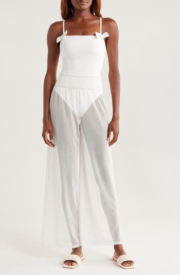 Wide legs further the breezy vibe of these floral cover-up pants that have enough stretch for a leisurely seaside stroll.