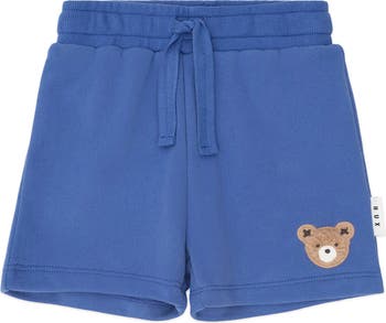 A cosy pair of terry shorts in a sporty, retro style. Made from fluffy organic cotton, they feature a functional drawstring for an adjustable fit, a Huxbear embroidery detail and a soft, stretchy waistband to keep little tummies snug. Bar tacked at back.