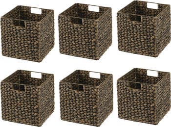 mDesign Hyacinth Woven Cube Bin Basket Organizer, Main, color, Black Wash