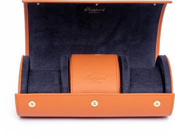 Travelling with more than one watch option with the stylish Hyde Park Three Watch Roll. This individually handcrafted three piece watch roll is the perfect travel accessory and will securely hold three of your selected watches. The middle section is removable and versatile as can travel as a single watch roll or hold accessories.