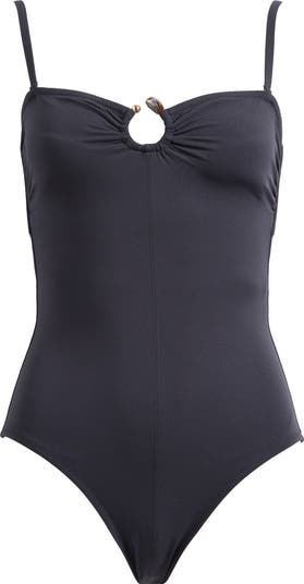 Go for a dip in this sunny-day swimsuit made with a wire neckline cutout and suspended by slender straps.