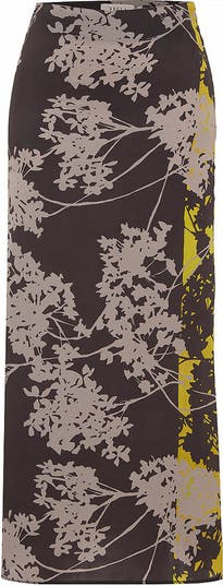 A sleek floral print maxi skirt with a tailored fit and subtle flare. The colorblock floral design and lightweight fabric make this an ideal summer maxi skirt, perfect for vacations, brunches, or special occasions. Pairs beautifully with the matching cami or a crisp shirt.