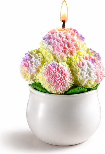 A hydrangea flower candle designed to capture the look of a full floral arrangement, featuring hand-sculpted petals in fresh green tones set in a ceramic vessel for elegant home décor and gifting. Carefully painted for lifelike detail, this scented candle doubles as a decorative piece, adding a light, natural touch to shelves, tables or living spaces while creating a calm and refreshing atmosphere.