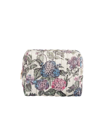 Beauty essentials deserve beautiful storage, like this hydrangea print make-up bag. The piece is crafted from soft ribbed velvet adorned with striking oversized florals and a luxe gold-toned zip.