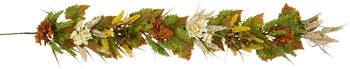 Bring timeless Autumn charm to your home with this Hydrangea artificial Fall harvest garland. This classic 5-foot Fall garland showcases burnt orange, green, and white Hydrangea flowers, mixed pip berry clusters in three rich hues, and dual-color Maple leaves that beautifully mimic the natural color change of the Fall season. Accented with realistic grass blade foliage in vibrant Autumn tones, this artificial Fall garland adds warmth and seasonal elegance to any space. Crafted with a bendable wire center and flexible branches, it’s easy to shape and style for Thanksgiving and all Autumn season decorating. Display this floral Fall garland on mantels, wrap it around banisters, frame doors and windows, or adorn covered porches for a welcoming harvest look. Its unlit design allows for creative customization—add your favorite mini lights, burlap bows, ribbons, or Fall accents for a personalized touch. Perfect for pairing with coordinating Fall wreaths, Thanksgiving centerpieces, flameless candles, and Autumn-themed décor, this durable Fall Harvest garland maintains its vibrant hues year after year. Recommended for indoor or covered outdoor use, it’s the perfect accent for Thanksgiving and all-season long Fall decorating. Product Features: Designed with small Hydrangea flowers and pip berry clusters Grass blade and dual-color maple leaves Autumn foliage Its bendable wire center allows you to shape the garland any way you desire Recommended for indoor use - if using outdoors, place under a covered area Dimensions: 5' long x 10" wide Material(s): polyester/plastic/foam/wire