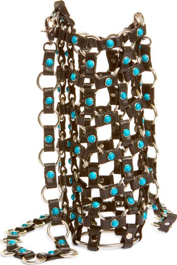 Your outfits and your thirst stay totally satiated with this leather water-bottle bag glittering with bezel-set crystals.