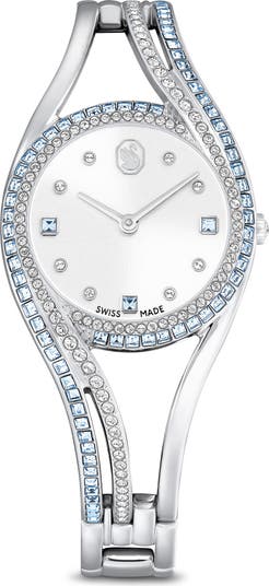 This refined watch dazzles with its elegant curves, signature Swan on the sunray dial and stunning pavé of 176 mixed crystals, distinguishing itself from any other timepiece.