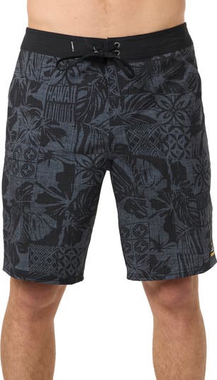 Stretchy, water-resistant fabric keeps you moving comfortably in and out of the water in board shorts constructed with antirash seams and a secure pocket.