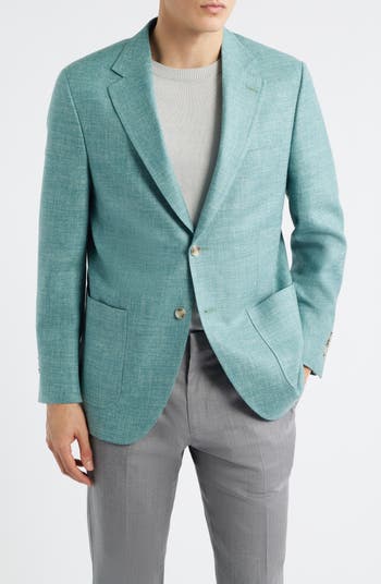 A textured blend of silk, linen and wool in a blend of sunny greens furthers the casual versatility of a sport coat with a lightweight feel ideal for semiformal and warm-weather occasions. Softer construction in the shoulders and a subtly fitted waist provide a relaxed silhouette that's easy to layer.