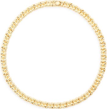 A twisted coil design inspired by vintage telephone cords brings retro appeal to this chain necklace from the Aussie label's fall '25 collection, Hypnotic, a nostalgic outing inspired by the 1970s Australian film 'Picnic at Hanging Rock.'