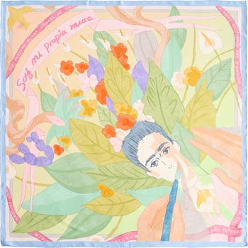 Inspired by Frida Kahlo's powerful spirit, the "I Am My Own Muse by Frida" Large Silk Scarf is a bold and artistic statement piece that celebrates individuality and self-expression. Crafted from 100% silk, this scarf features Frida's iconic image surrounded by pastel florals and vibrant colors, a tribute to her unique beauty and powerful art.