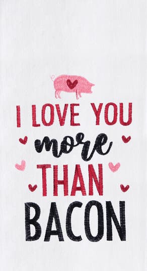 Show your love in a unique and humorous way with this "I Love You More Than Bacon" embroidered flour sack dishtowel. This charming towel features a playful message that's sure to bring a smile to any bacon lover's face. The soft and absorbent flour sack fabric makes it perfect for drying dishes, glassware, and hands, while the embroidered pig adds a touch of whimsy to your kitchen. Crafted from high-quality materials, this dishtowel is not only stylish but also practical. The flour sack weave provides exceptional absorbency and a lint-free finish, making it ideal for all your kitchen tasks. It's also machine washable for easy care and maintenance. Whether you're tackling everyday kitchen chores or simply adding a decorative touch to your space, this dishtowel is a delightful addition to your home. Hang it on your oven handle, drape it over your countertop, or use it to dry your hands – this versatile towel is both functional and stylish.