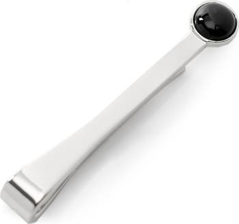 Those three little words are engraved on the back of this sleek, tapered tie bar with a round onyx capping off the front.