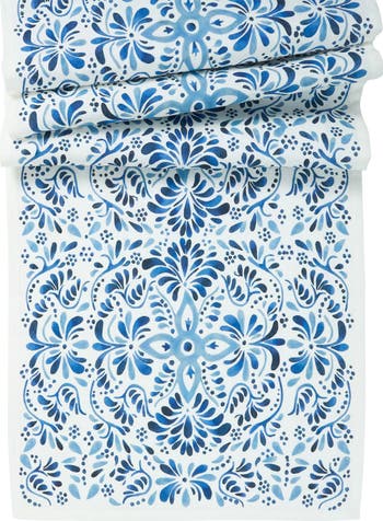 The beautiful cobalt-blue tiles found on the sandy Iberian coast inspired the color and pattern of this fine linen table runner that injects a bit of the region's breezy attitude into your decor.