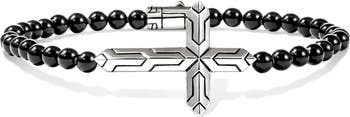 A sterling silver cross pendant hand-carved with the heritage Icon chain motif commemorates the brand's 50th anniversary on this beaded onyx bracelet.