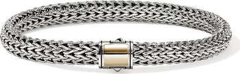 The art of Balinese chain weaving is masterfully displayed on this handcrafted sterling silver bracelet highlighted with a glint of 14-karat gold at the clasp.