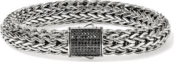 The art of Balinese chain weaving is masterfully displayed on this handcrafted sterling silver bracelet secured with a push clasp illuminated with pavé sapphires