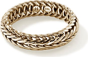 This soft chain ring offers subtle dimension and volume with artisan handwoven 14-karat gold.