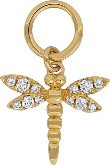 Personalize bracelets or necklaces with this dragonfly-shaped charm made from high-shine 18-karat yellow gold glittering with diamond-embellished wings.