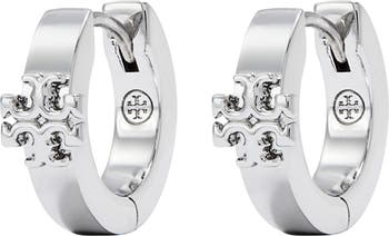 Add a dash of classic elegance to your look with these polished silvertone earrings adorned with the iconic double-T logo.