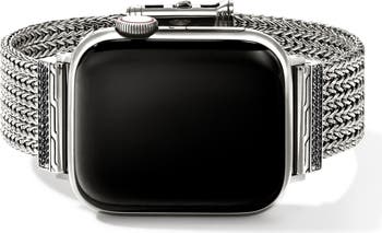 A signature woven strap brings intricate texture to this sterling silver Apple watchband handcrafted with pavé black sapphires.