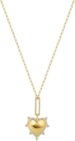 Icy diamonds bring organic sparkle to this pillowy heart pendant necklace handcrafted from 18-karat gold.