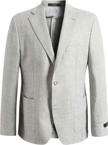 A lightweight blend of wool and linen in a pale glen check relaxes the formality of a sport coat tailored with lightly structured shoulders emphasizing its casual, easy-wearing fit. Pair it with textured fabrics when you want to look smart but not too formal in elevated and warm-weather settings.