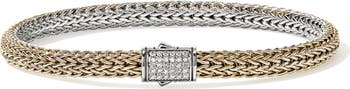 Choose between shiny sterling silver or warm 14-karat gold on this reversible bracelet featuring the signature hand-woven chain and a diamond pavé clasp.