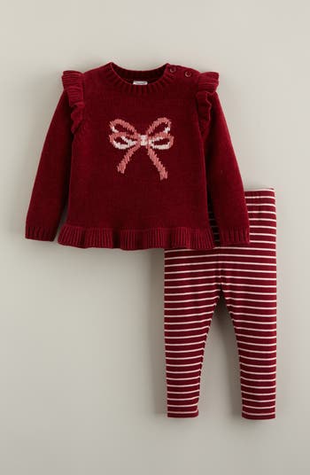 Shoulder ruffles sweeten this cozy intarsia sweater that pairs perfectly with coordinating leggings to give baby a complete look.
