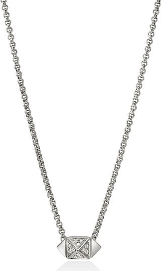 Pavé diamonds illuminate the stud pendant that adds a little edge to this delicate chain necklace handcrafted in sterling silver.