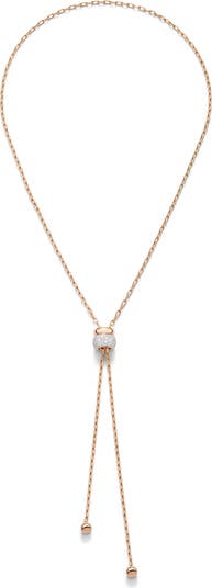 The Italian label honors its rich goldsmithing heritage with this 18-karat rose gold bolo necklace fixed with a bead of 49 brilliant pavé diamonds.