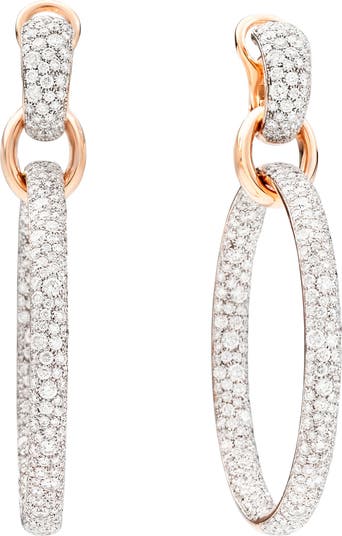 The Italian label honors their rich goldsmithing heritage with these 18-karat rose gold hoop earrings illuminated with 614 brilliant pavé diamonds inside and out.