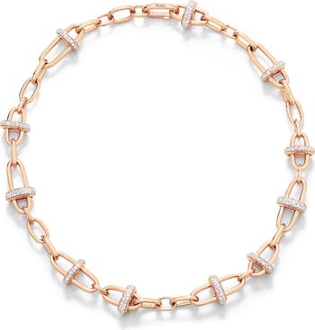The Italian label honors their rich goldsmithing heritage with this 18-karat rose gold link necklace highlighted with 567 brilliant pavé diamonds.