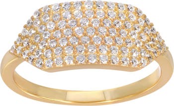 A classic yet cool girl signet ring designed ring for the modern woman, crafted in polished 14K gold vermeil and finished with delicate cubic zirconia for subtle sparkle.