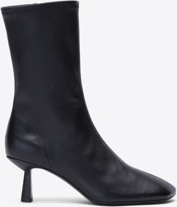 The ID Stretch Glove Boot is a stylish and expressive addition to the ID family. Crafted from stretch nappa, it hugs the calf and features a unique teardrop heel shape. Perfect for making a statement.