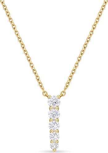 Graduated round diamonds trickle down the linear pendant of this 18-karat gold chain necklace that will lend instant opulence to any ensemble.