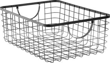 Getting organized just got easier thanks to the iDesign Metal Pantry Basket. Sleek and highly versatile, this solution corrals small seasoning jars, snacks, or boxed foods so you never lose anything to the back of the pantry again. The open-wire design provides easy visibility to items inside and proper ventilation if storing fruits and vegetables. Crafted from durable metal with curved, integrated handles, these baskets transport easily and make a darling display when moved from the pantry to the kitchen table. With iDesign, you can live simply every day.