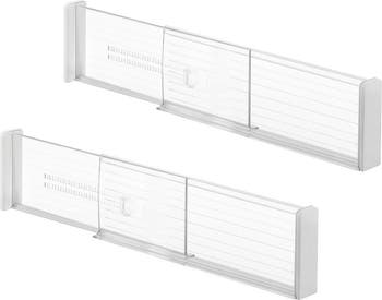 Divide and conquer drawer clutter once and for all with our iDesign Adjustable Drawer Dividers. Designed to accommodate deep drawers, these drawer dividers are higher than your standard drawer dividers, helping you to create instant visibility and eliminate rummaging. Each divider adjusts to fit inside your drawer and locks into place by simply lifting the lever for a secure hold. Use separators to create compartments in unruly drawers by sorting large utensils and small gadgets in the kitchen, toiletries in the bathroom, clothes in dresser drawers, or hobby or work supplies in the office. With iDesign, you can live simply every day.