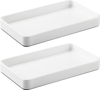 - DURABLE DESIGN - This rectangular tray features raised edges and rounded corners to keep small accessories or cosmetics contained; Plus, this piece also serves as a hand towel tray in guest bathrooms