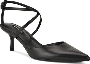 Slender straps crisscross before curving around your ankle in this walkable leather pump sharpened by a pointy toe.