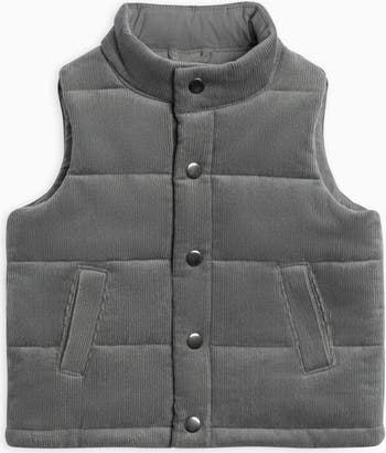 Layer up in cozy style with the Idris Corduroy Snap Vest, a cool-weather essential that adds warmth without the bulk. This quilted vest is crafted from soft organic cotton corduroy and lined with smooth cotton poplin for extra comfort. Nickel-free metal snaps make for easy on-and-off, and pockets are perfect for tiny treasures (or chilly hands). Whether paired with a long-sleeved top or layered over a dress, it’s the go-to finishing touch for any fall outfit.