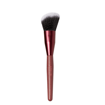 An angled face brush that provides perfect application of blush, bronzer, contour, and foundation. The brush’s dense, compact bristles make it ideal for liquid and cream products, while also performing excellently with powders. IDUN Minerals Pro Brush Collection is a range of high-quality brushes made in Italy. The bristles are made from synthetic Dermocura®, the most advanced fiber compared to natural hair and former synthetic fibers. The fibers are hypoallergenic, suitable for sensitive skin, easy to clean, and take your makeup application to the next level. The handle is made from 93% recycled plastic and 20% recycled aluminum.