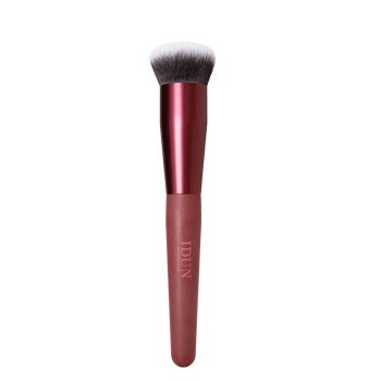 A liquid foundation brush for flawless, airbrushed-looking skin, designed with densely packed bristles that effortlessly blend and buff foundation for a streak-free, even coverage. IDUN Minerals Pro Buffer Foundation Brush is expertly crafted in Italy with bristles that are made of synthetic Dermocura® which is the most advanced fibre compared to natural hair and former synthetic fibres. The fibres are hypoallergenic, gentle and suitable for sensitive skin, easy to clean, and provide a supreme makeup application experience. The handle is made from 93% recycled plastic and 20% recycled aluminium.