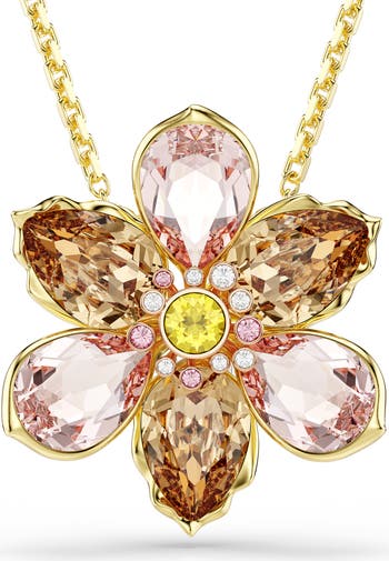 The sparkling flower pendant suspended from a delicate chain can be worn as a brooch, allowing you to wear this stunning mixed-cut crystal design with a variety of looks.